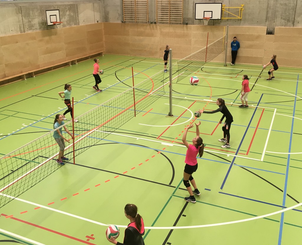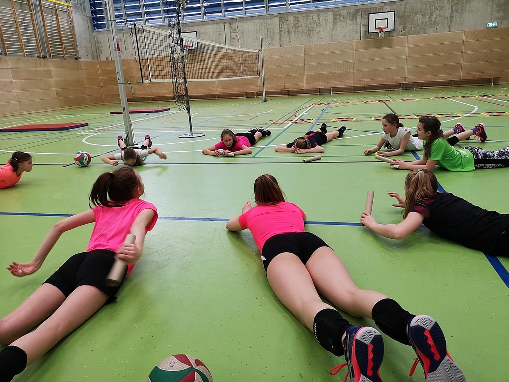 Insgesamt hatten die Mädels fünf anstrengende Trainingseinheiten in der Sporthalle des Andre-Gymnasiums zu absolvieren. Hierbei wurden die verschiedenen Volleyballtechniken und das Zusammenspiel intensiv trainiert.