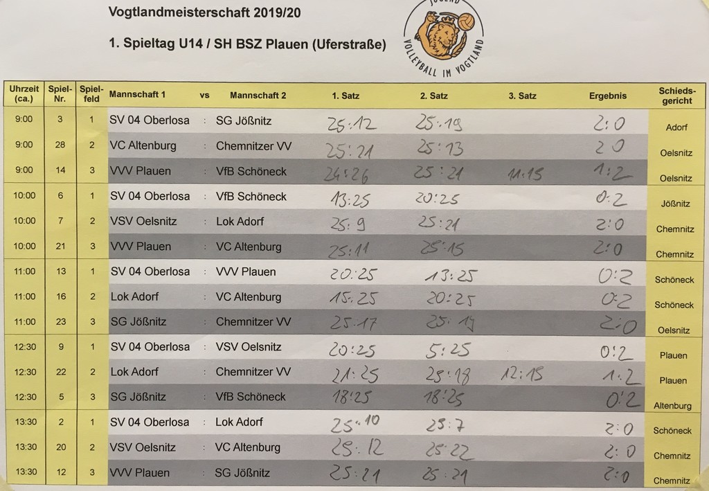 Zu Beginn stand uns das Team des VC Altenburg gegenüber und wie erwartet, mussten wir uns erst einmal an das Spielfeld gewöhnen. Anfänglich erschien uns das Netz von der Grundlinie sehr weit entfernt. Die Aufschläge wollten noch nicht so richtig die Netzkante überqueren. Auch in der Annahme mussten wir uns erstmal reinarbeiten. Gelang diese, wollten die Angriffe noch keine richtige Wirkung zeigen. Damit endete das Spiel mit einem 0:2 für Altenburg.