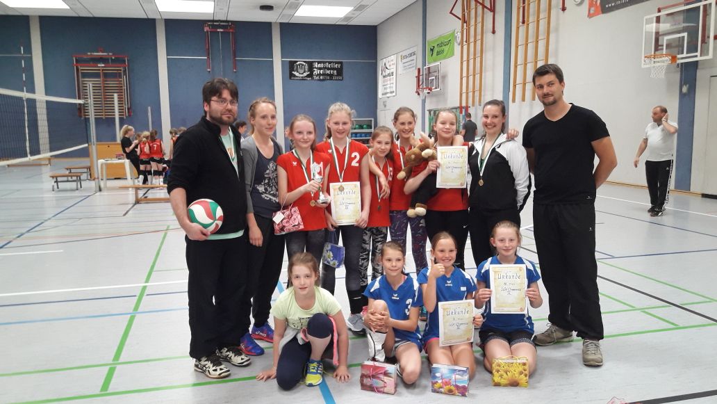 Nach dem Anpfiff folgten viele spannende Spiele und alle Mädels hatten viel Spaß dabei. Es wurde fleißig gepritscht und gebaggert, ehrgeizig nach jedem Ball gelaufen. Und natürlich musste sich zwischendrin ordentlich gestärkt werden. Es war sehr schön zu sehen, dass unser Nachwuchs viel an Spielerfahrung sammeln konnte und weiter motiviert im Training dabei ist. Am Ende belegten wir den 10. Platz (II), den 7. Platz (III), den 3. Platz (IV) und sogar Platz 1 (I). Das Finale ähnelte dem der Bezirksmeisterschaft in der U12 sehr. So standen wir zum zweiten Mal dem Lichtensteiner Team gegenüber. Nachdem wir den ersten Satz erstmal abgeben mussten, entschieden wir das Spiel mit 2:1 für uns. Doch einfach war es nicht. Mit viel Ehrgeiz und Konzentration kämpften wir um jeden Punkt. Das Spiel war nochmal eine intensive Vorbereitung auf die Sachsenmeisterschaft, bei der beide Teams vertreten waren.